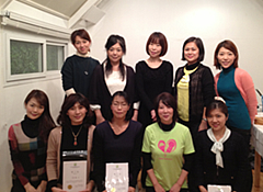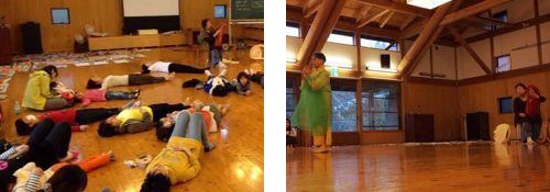 写真左は沖縄で音脳リズムマッサージの養成をされていらっしゃる知念徳子先生。10代の生徒さんにとってはお姉さんの存在。常に愛情をもって接している様子が生徒さんの姿からひしひしと伝わってきました。