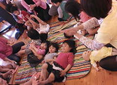 子ども達はママの声とメロディーを耳や肌で感じながら気持ちよさそうに体験していました。