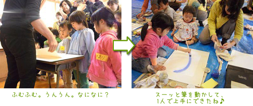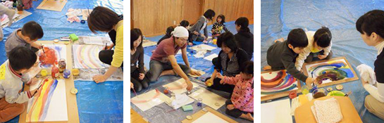 午後からは、2つのワークショップ。講師のお子さんやご主人、そして一般の親子さんも交えての和気あいあいと楽しい時間でした。